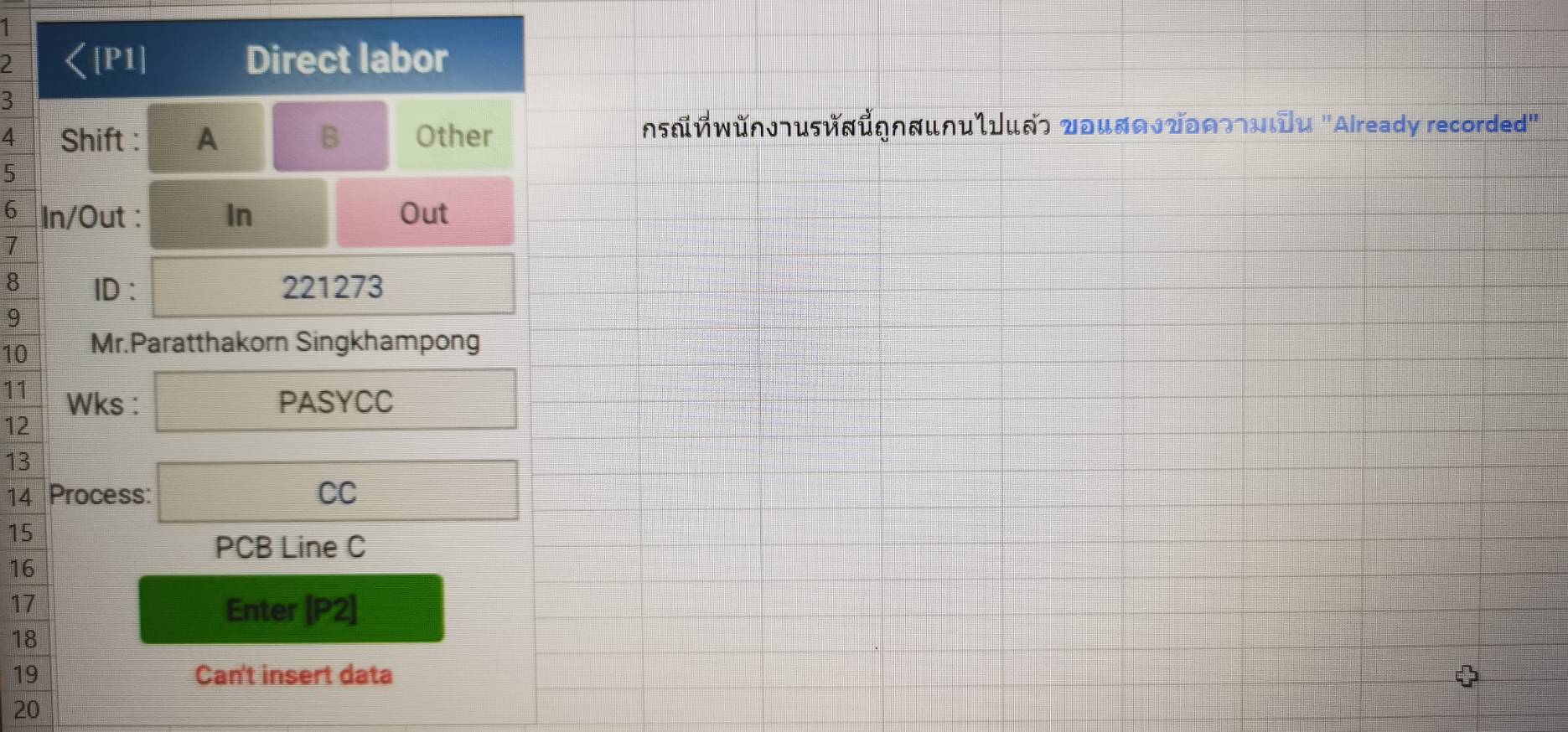 -Edit the employee code scanning field To be able to key manual by yourself.